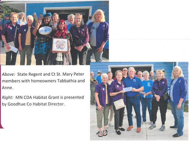Catholic Daughters Court St. Mary Peter # 1864 participated in the Habitat build at 213 E. 5th Street in Red Wing, MN. The build was in cooperation with the Goodhue County Habitat for Humanity. The home was dedicated on September 23, 2025
